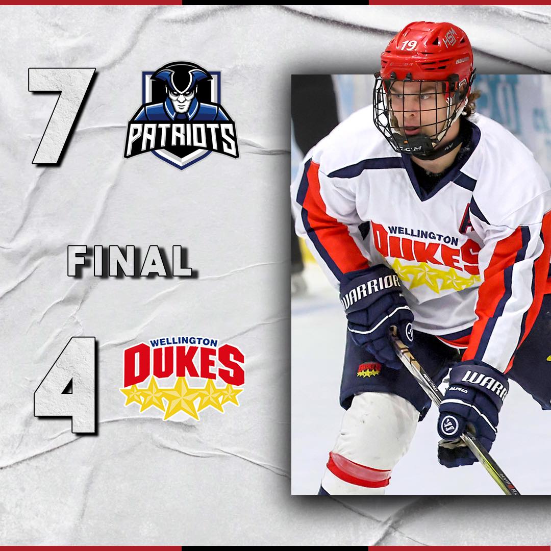 Wellington stuck close for a long while, getting out of the first period tied at two thanks to a snipe from Cole Ellis (10th of the season) and a shot that seeped through the pads of Patriots goalie Trey Caracciolo for Liam Campbell (25th), worked around back-to-back powerplay tallies from Hudson Cummins and Anthony Giacalone.